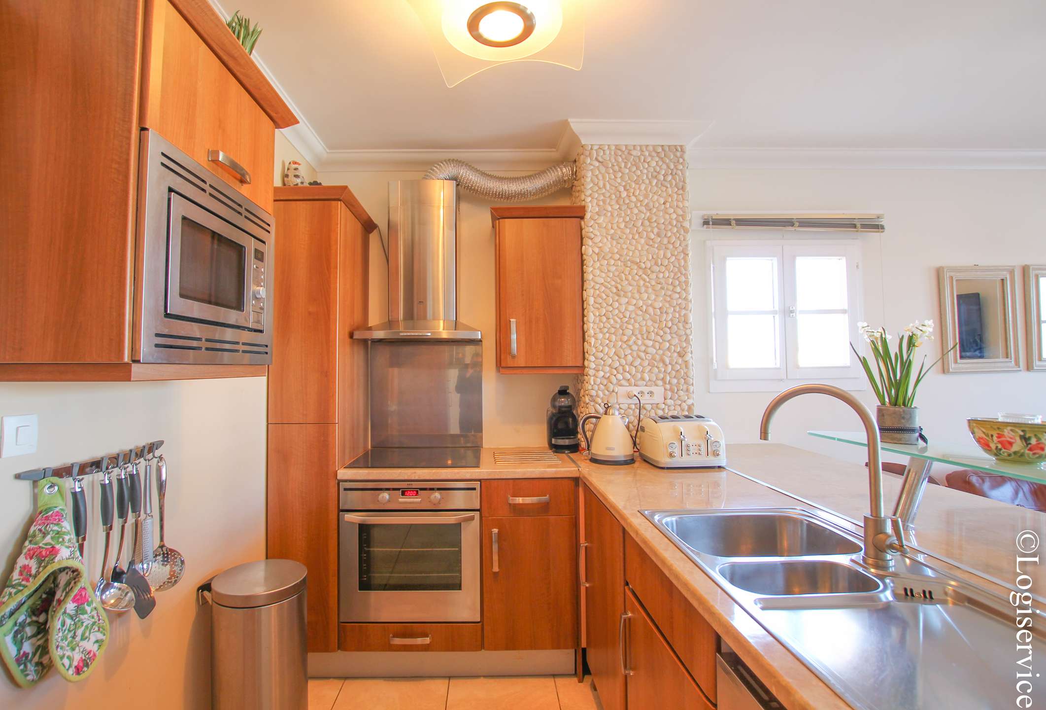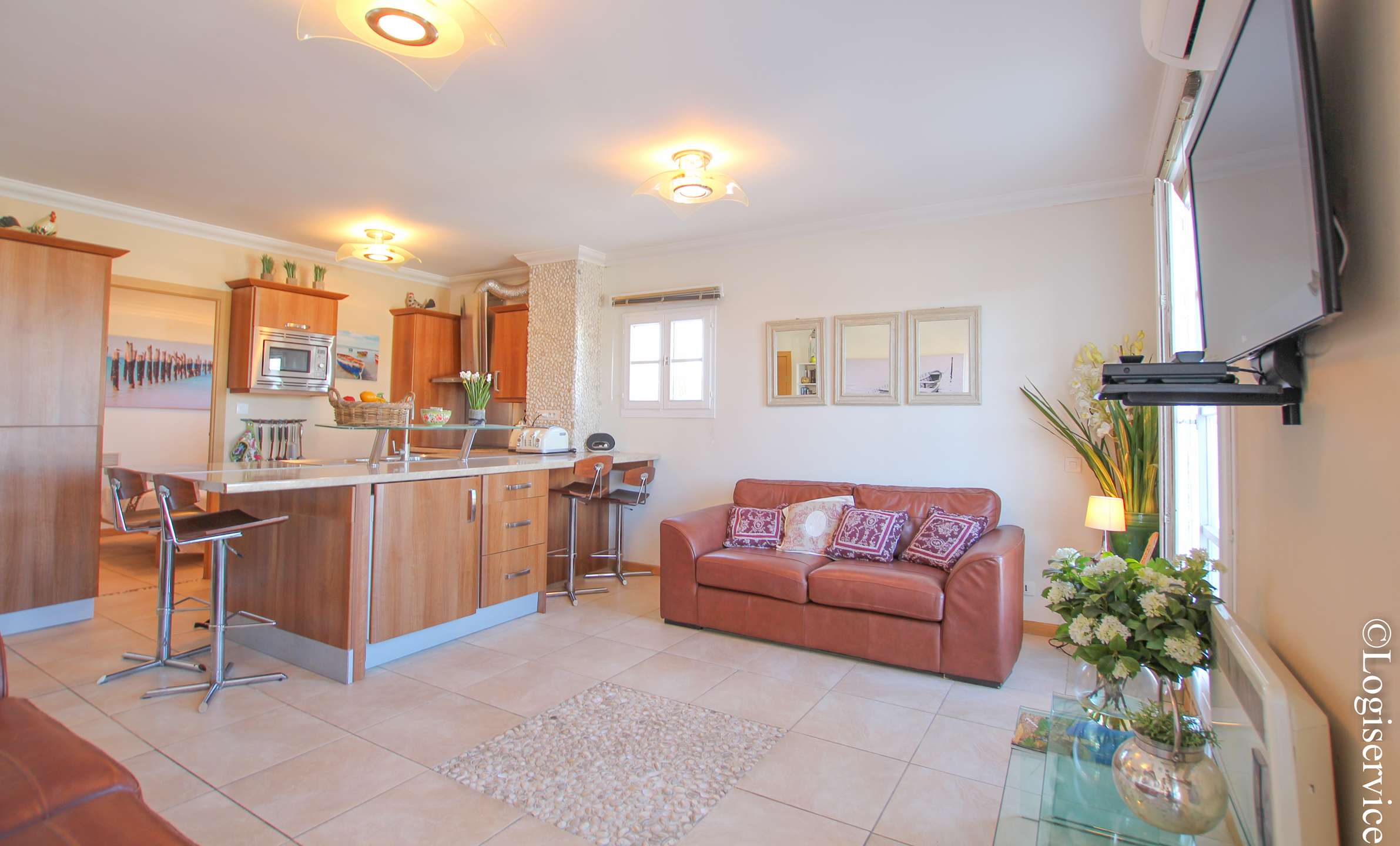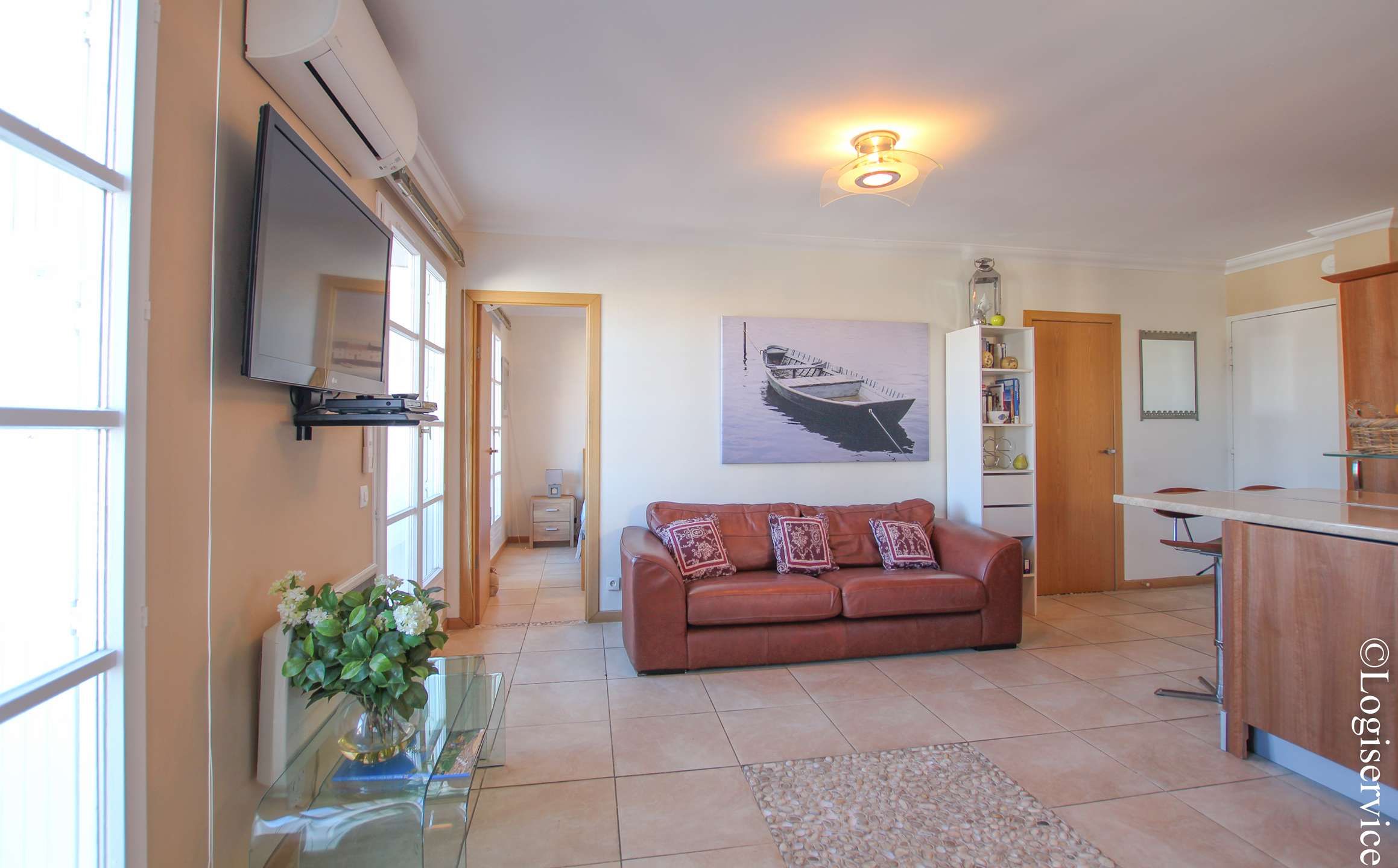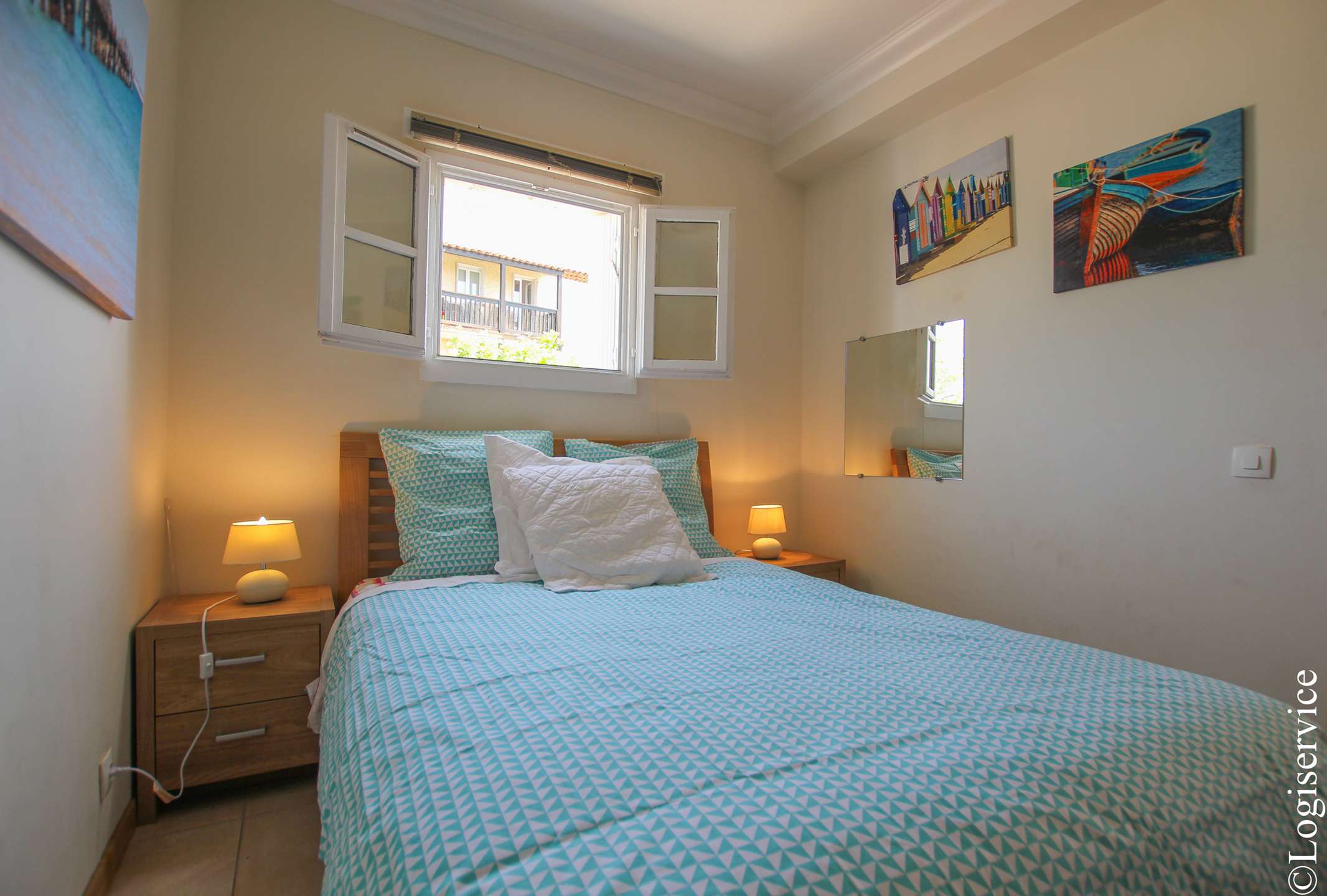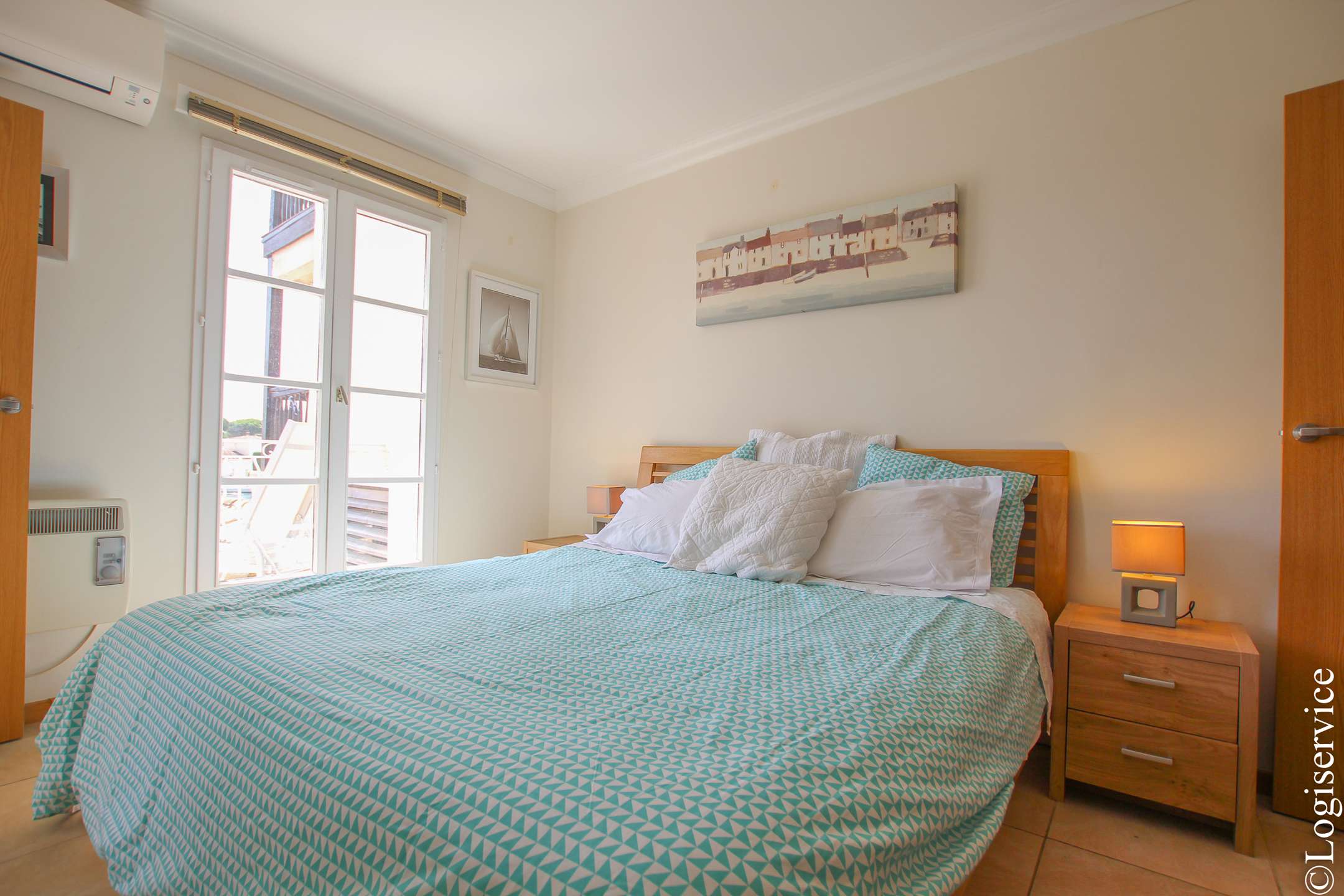 A mi-chemin entre Port Grimaud I et Port Grimaud II, au 1er étage d'une résidence sécurisée avec ascenseur, agréable appartement 2 chambres, rénové et climatisé. Il se compose d'une entrée avec une salle de douches avec toilette, une cuisine équipée ouverte sur le séjour, une spacieuse terrasse exposée Sud-Est avec vue sur les canaux de Port Grimaud, deux chambres à coucher dont une avec salle de douches et toilette.