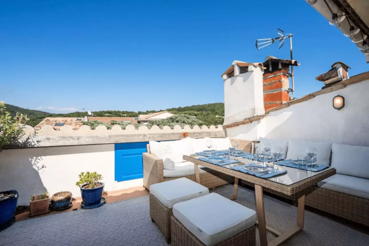 Parking gratuit dans tout le village. Cette maison de village dispose d’un salon lumineux et spacieux avec une cuisine ouverte et une terrasse tropézienne avec un coin salon/salle à manger donnant sur les collines environnantes.