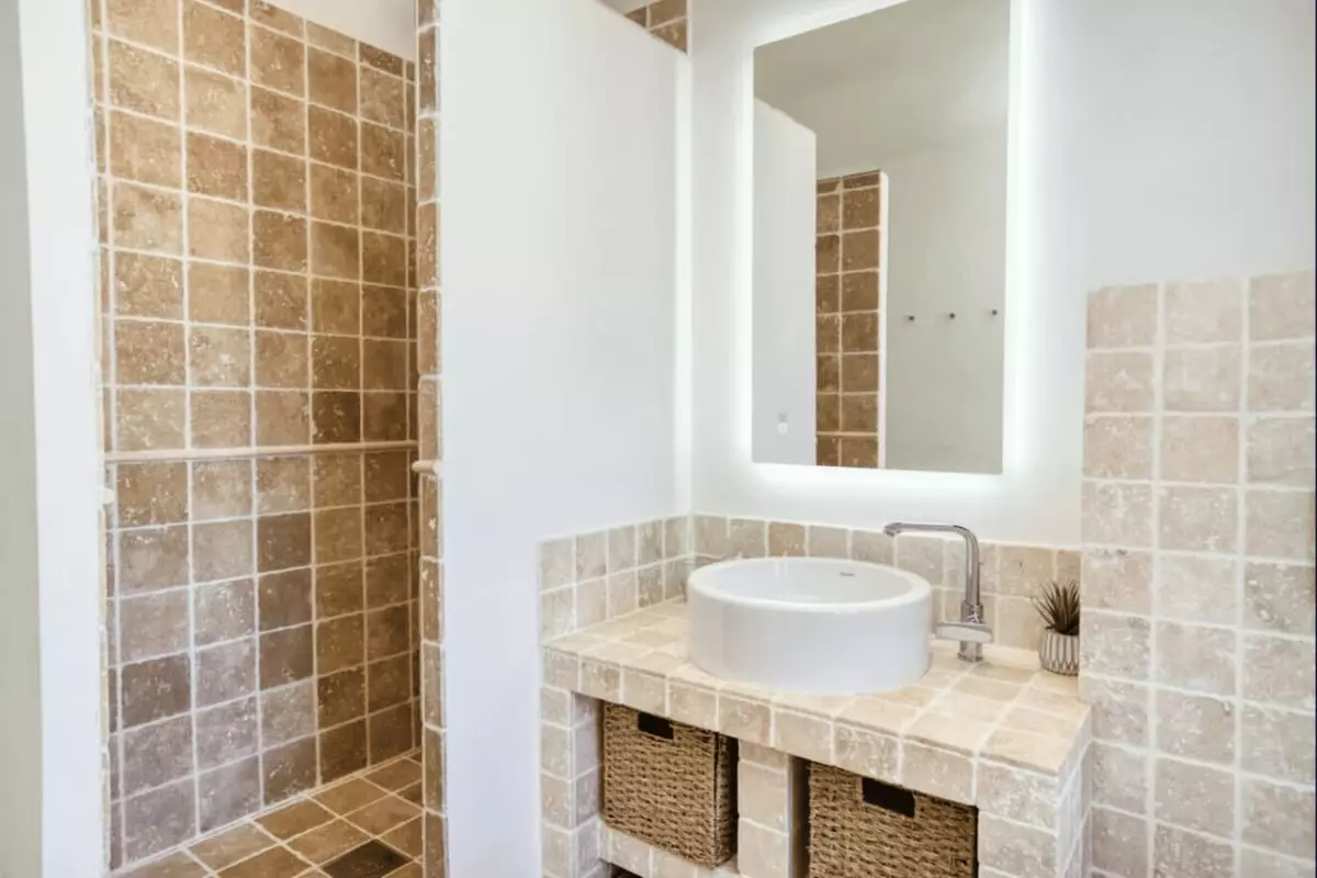 Quatre chambres, la chambre principale avec un lit double de 160cm, une autre chambre avec un lit double de 140cm et une chambre simple toutes sur le même étage. La chambre principale dispose d’une salle de bains avec douche à l’italienne, lavabo, WC, sèche-serviettes chauffant, laveuse et sécheuse et vapeur. Les deux autres chambres partagent une salle de bain avec douche à l’italienne, lavabo et WC. Un autre salon avec balcon, au niveau de l’entrée, dispose d’un lit double de 140 cm.