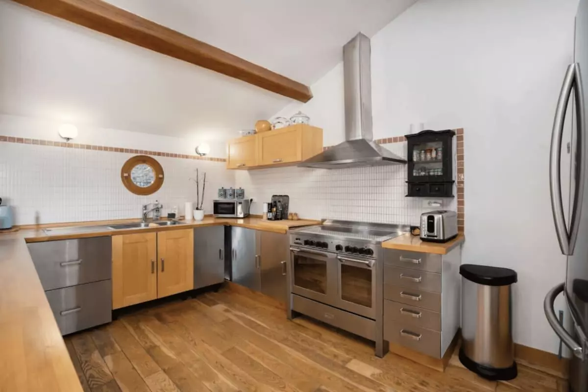 La cuisine est équipée d’un réfrigérateur américain avec de l’eau filtrée et des glaçons, d’un lave-vaisselle, d’une machine à café Nespresso, d’une bouilloire, d’un four micro-ondes, d’une cuisinière vitrocéramique et d’un four. Entièrement équipé pour tous vos besoins.